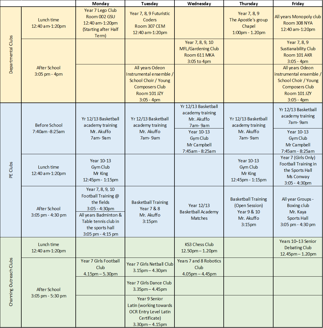 If there is a club you would like that doesn’t currently feature on our list please approach a relevant staff member or your Head of Year. We endeavour to provide any extra-curricular activity that garners student interest.