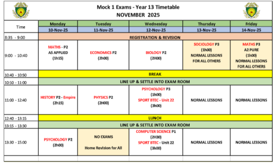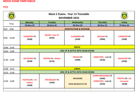 Please click on the tab for the YR13 Mock 3 Exams Timetable